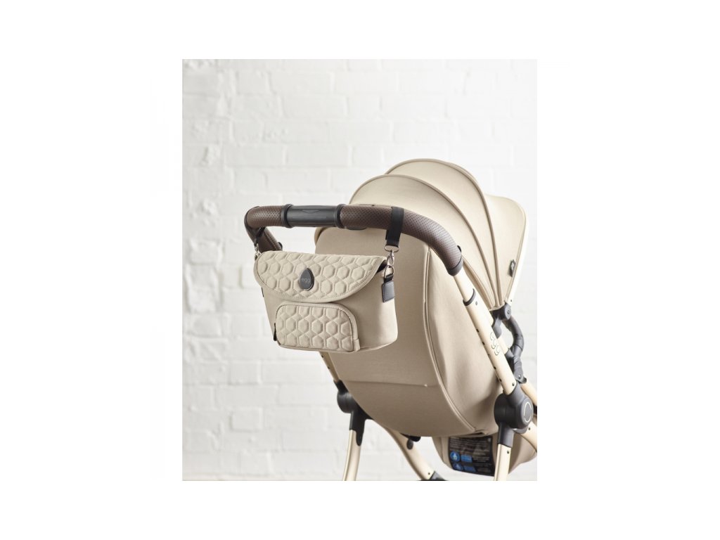 Organizér má popruhy na suchý zip, které můžete zavěsit na madlo kočárku, nebo použít ramenní popruh a nosit jej jako tašku mimo kočárek.