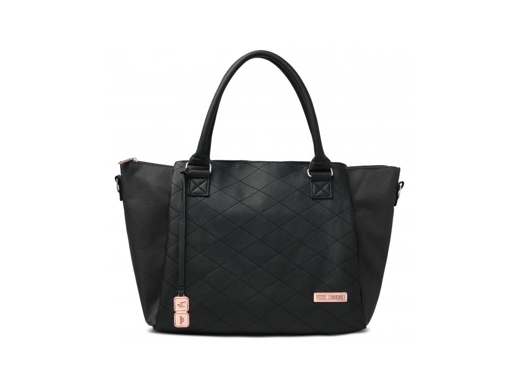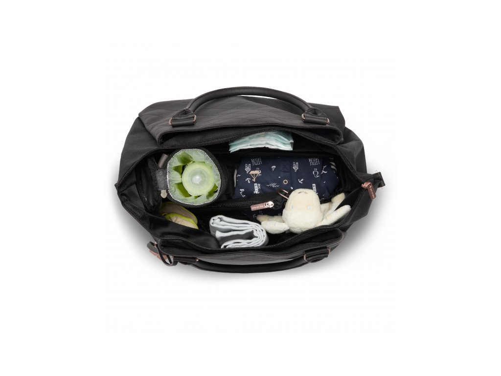 Praktická jako taška na pleny, elegantní jako kabelka. Luxusní taška na pleny Royal je funkčním a zároveň módním příslušenstvím. Díky svému vzhledu s koženými prvky a stylovými látkami ji rodiče budou používat i dlouho poté, co v ní nosili plenky. Důmyslné rozložení tašky nabízí štědrý prostor se spoustou možností pro uschování všech důležitých věcí tak, abyste je na procházkách bezpečně a rychle našli. Plenky, vlhčené ubrousky, náhradní oblečení atd. lze snadno uložit do velké hlavní přihrádky, která se zvenku zapíná na zip a magnet. Dvě dodatečné vnější kapsy, které jsou také magneticky uzavíratelné a několik vnitřních kapes různých velikostí, se dokonale hodí na všechny nepostradatelné věci, které na cestách s dítětem potřebujete. Hygienická přebalovací taška, vyjímatelný termo držák na láhev se sponou pro připevnění ke kočárku, praktická kapsička a voděodolná přihrádka - to vše je součástí tašky. Se třemi různými způsoby nošení se taška dokonale hodí ke každému vzhledu: pomocí integrovaného připevnění ji lze vozit přímo na kočárku, díky ramennímu pásu v imitaci kůže ji můžete nosit přes rameno nebo ji lze nosit jako stylovou kabelku. Malé kovové nožičky vespod zajišťují bezpečné stání tašky a zabraňují jejímu znečistění.
