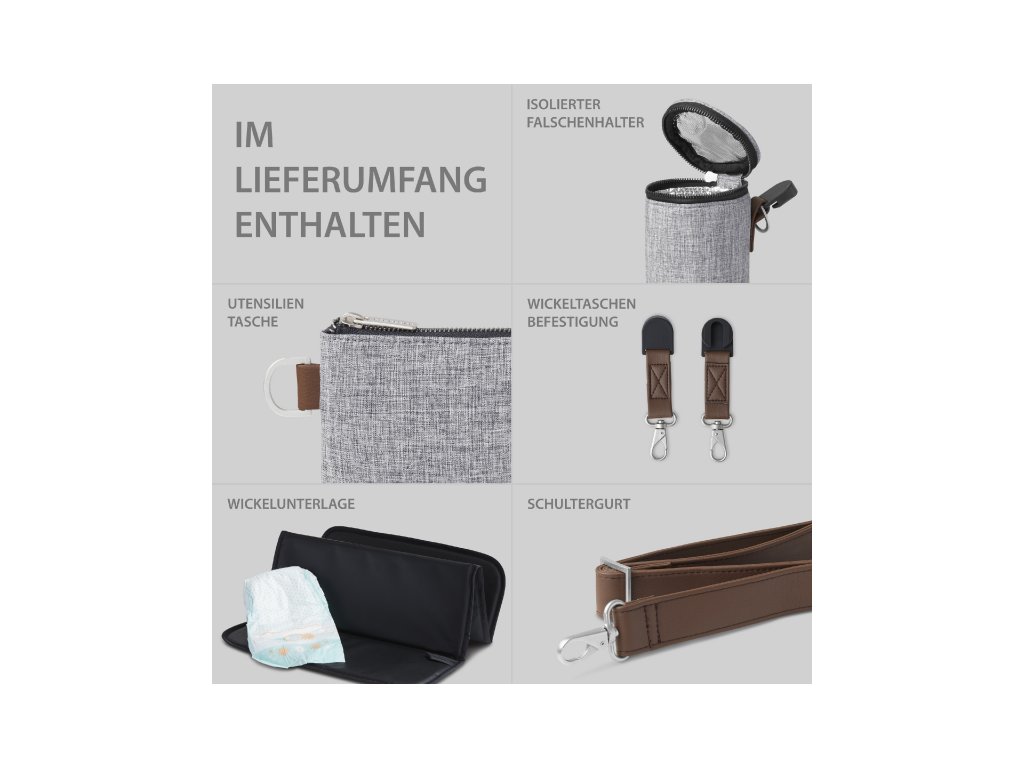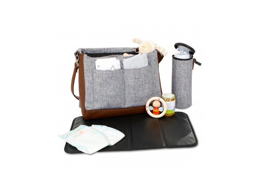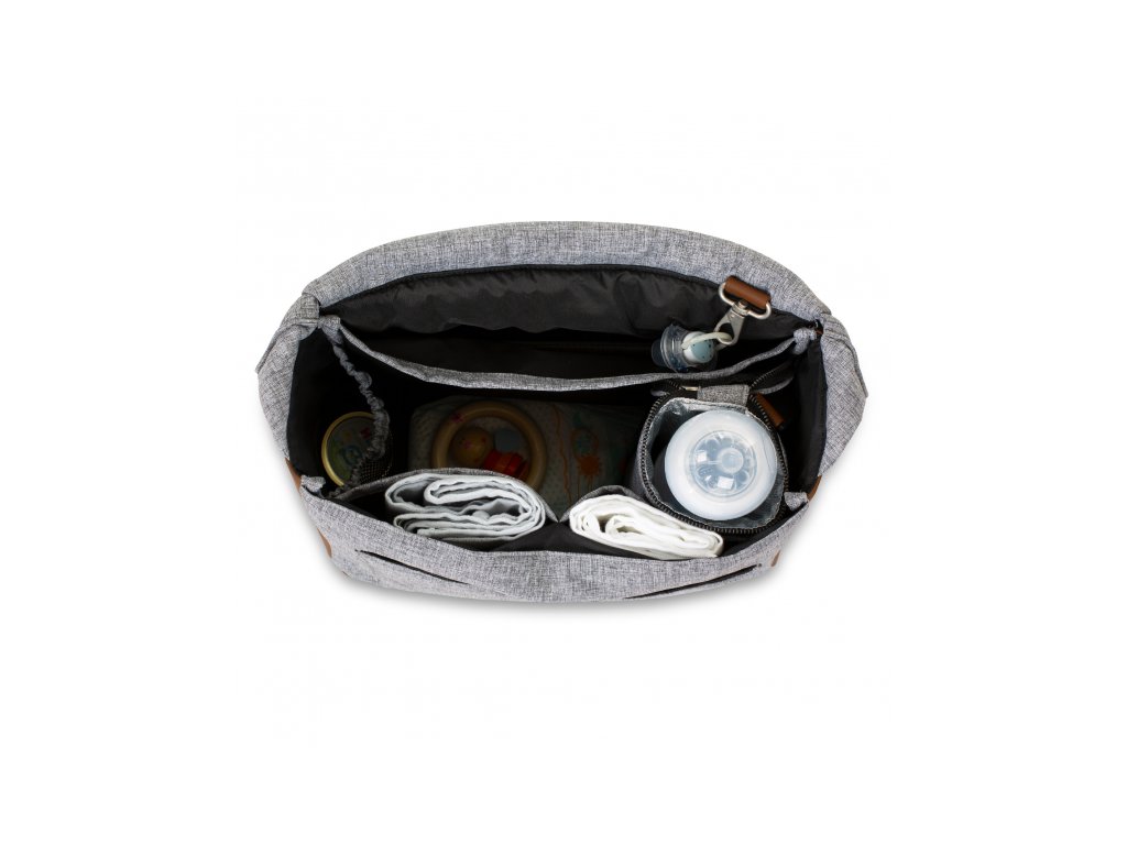 Taška na pleny Urban rodičům umožňuje stylové nošení všech potřebných věcí. Moderní taška s exkluzivními detaily v napodobenině kůže se pyšní velkou přihrádkou, která je ideální na pleny a láhve. Mimo to taška obsahuje několik menších kapes pro bezpečné uložení drobných předmětů a přebalovací podložku, která vám umožňuje hygienické přebalení vašeho dítěte ať už jste kdekoliv. Široký popruh v napodobenině kůže zajišťuje pohodlné nošení tašky na rameni. Tašku na pleny Urban lze používat se všemi modely kočárků.*
