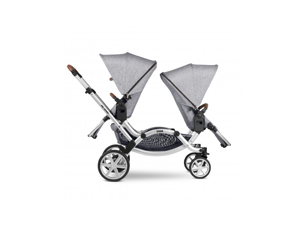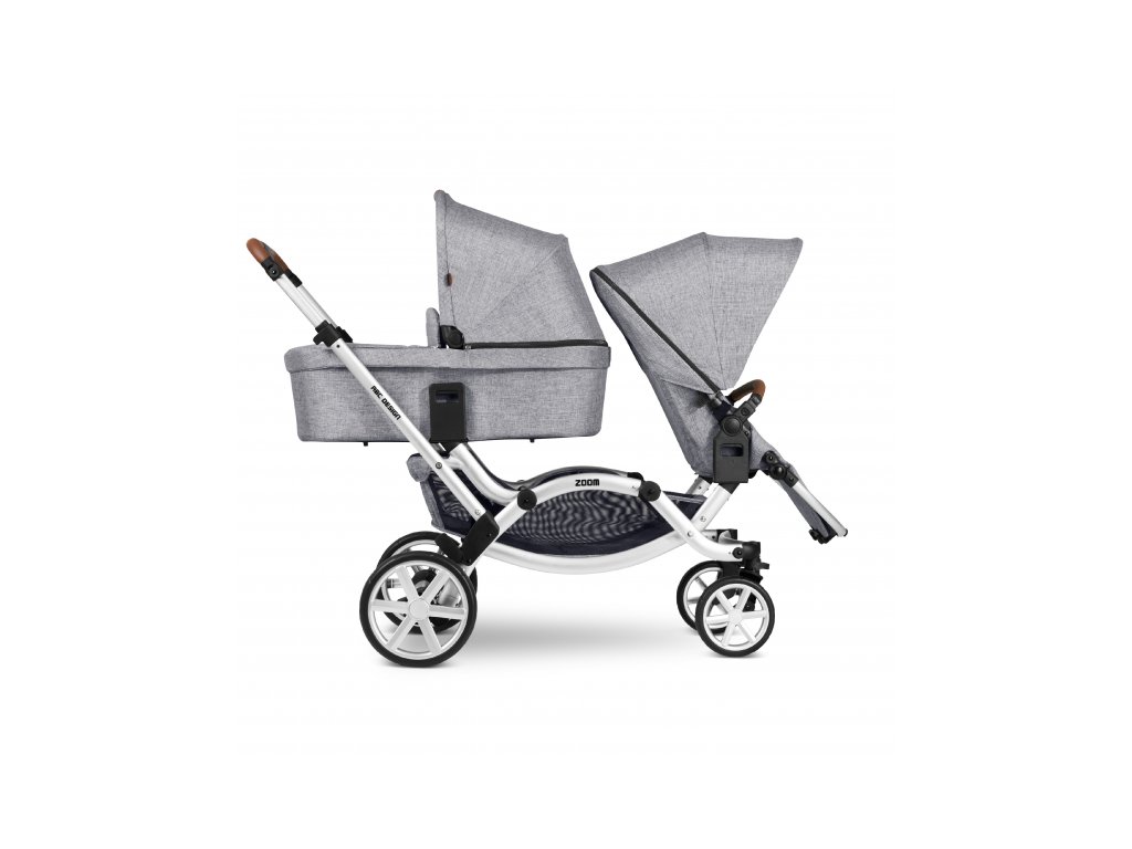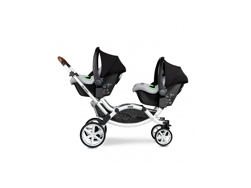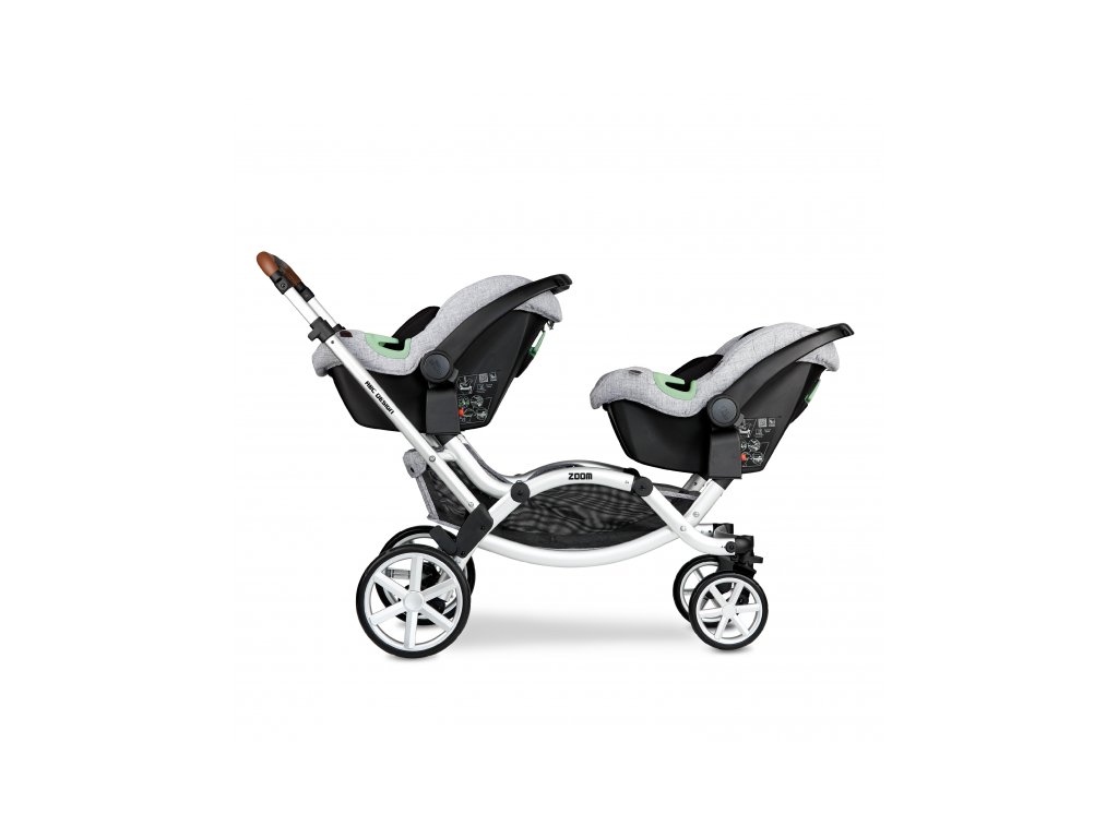 Dvojnásobné štěstí s sebou ale přináší také nové výzvy. Význam dětského kočárku v každodenním životě rodiny je tak důležitější než kdykoliv předtím. Kočárek Zoom vám pomůže zachovat si svobodu a flexibilitu, která je pro vás tak důležitá. Podle věku dětí můžete libovolně kombinovat sportovní nástavbu, korbičku a autosedačku. Díky otočným kolům je kočárek Zoom velmi snadno ovladatelný a jeho kompaktní design si skvěle poradí i s úzkými prostory. Pomocí několika pohybů jej lze proměnit na cestovní systém a nebo složit do minimálních rozměrů. Pro vaše děti bude kočárek Zoom tím nejkrásnějším místem, odkud budou moci společně objevovat svět. Během jízdy se na sebe mohou dívat, společně se smát, pozorovat vás nebo jen tak sedět a zkoumat okolní svět.