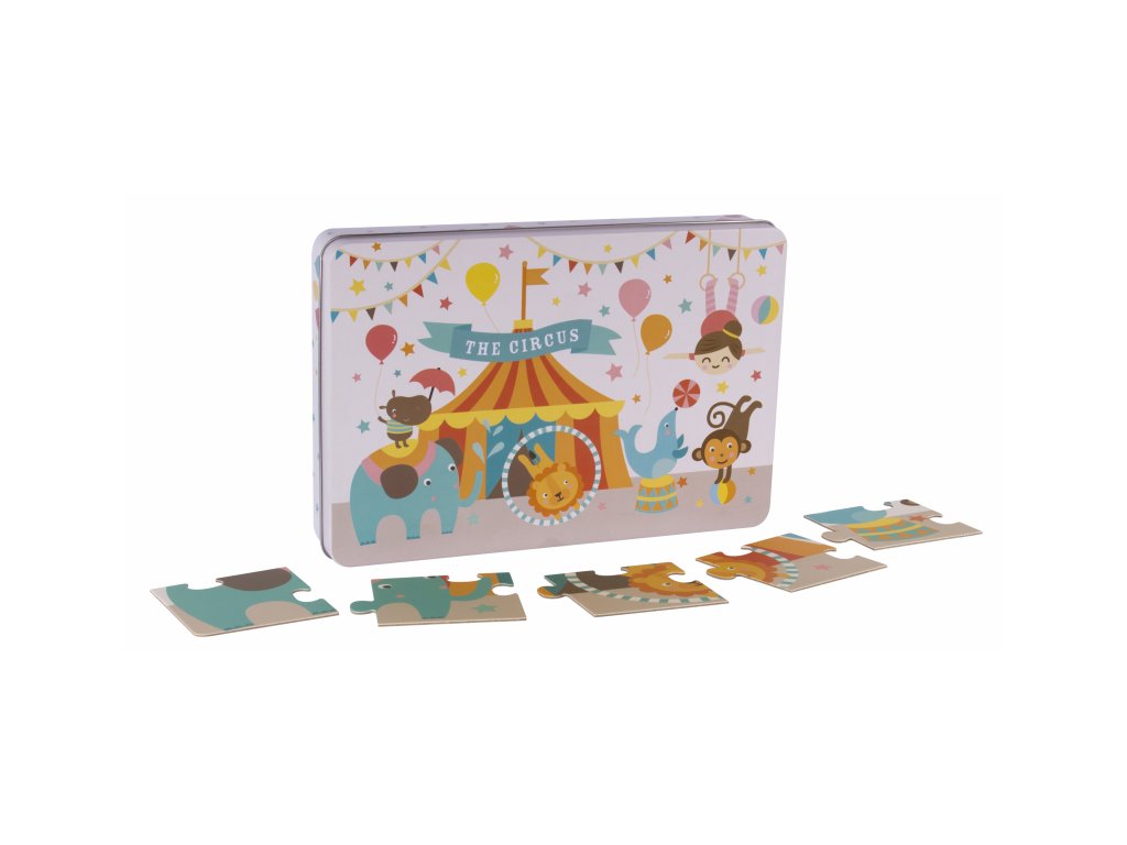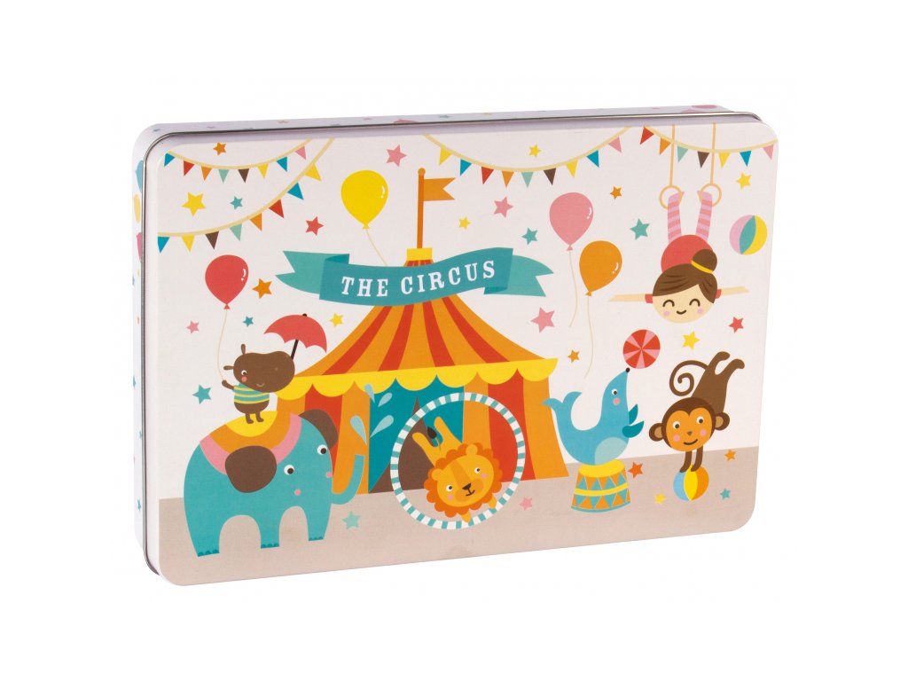 Puzzle v kovovém boxu Cirkus ilustrované Lily Lane.