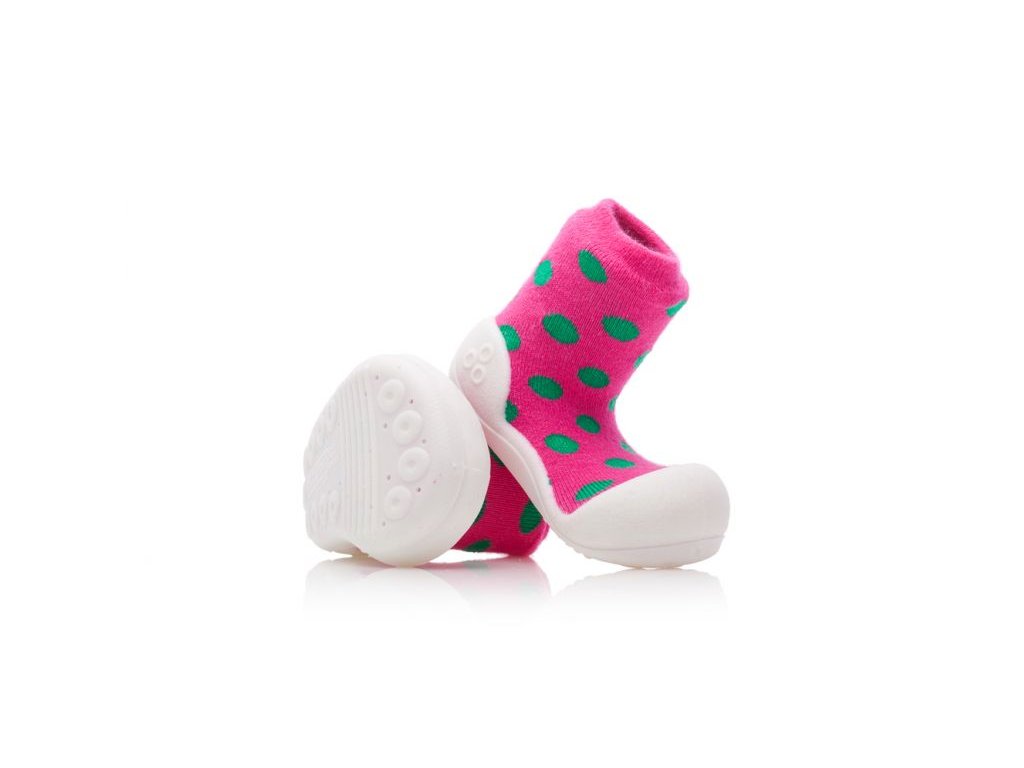 Máte doma malou princeznu? Potěšte ji těmito růžovými botkami se zelenými puntíky. Stejně jako ostatní botičky od firmy Attipas jsou i tyto speciálně navrženy pro přirozený vývoj dětských chodidel.