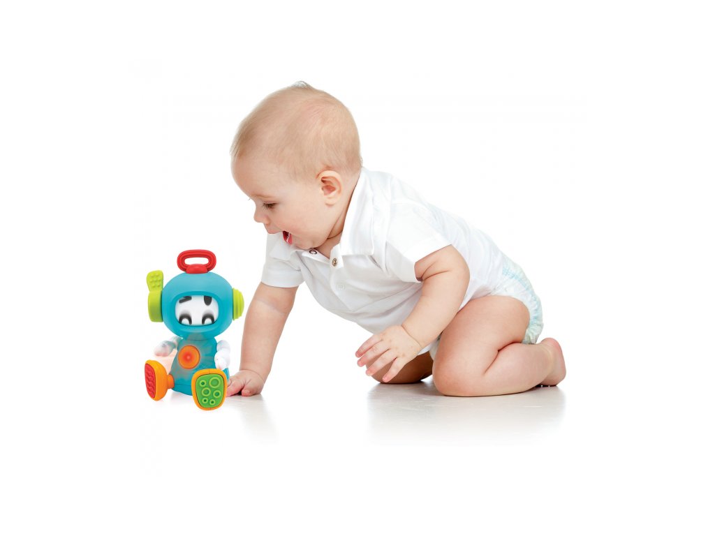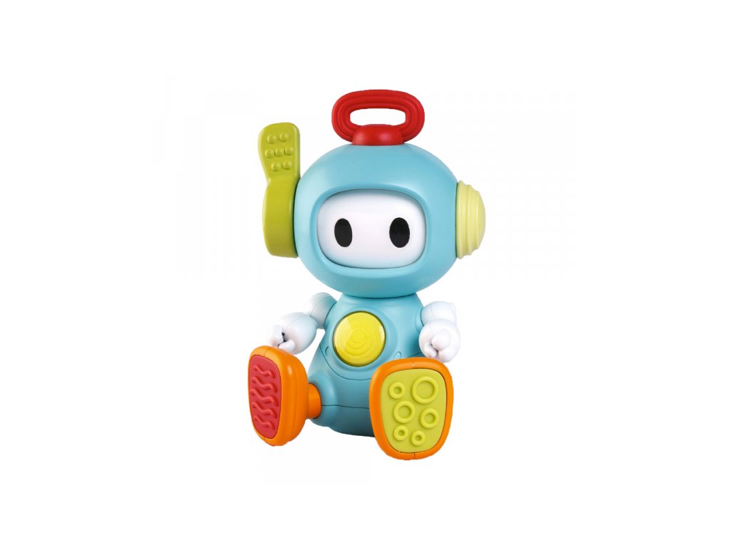 Roztomilý robot pro nejmenší nabízí čtyři různé výrazy obličeje, dvě veselé melodie a 16 světelných a zvukových efektů. Všechny funkce se velmisnadno ovládají zmáčknutím či pohybováním jednotlivými částmi robota.