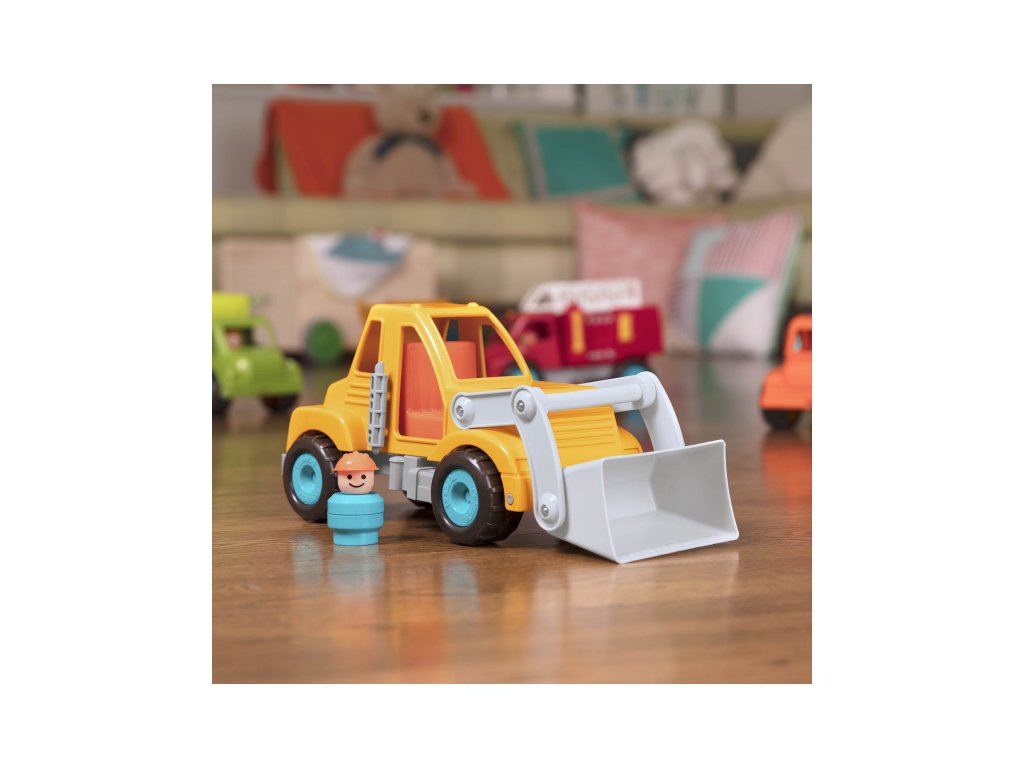 Bez pořádného nakladače se neobejde žádná stavba! Váš malý stavitel si ho užije na písku, na zahradě i doma. Funkční nakladač z pevného, kvalitního materiálu má měkká kola pro snadnou jízdu a vyjímatelnou figurku řidiče.