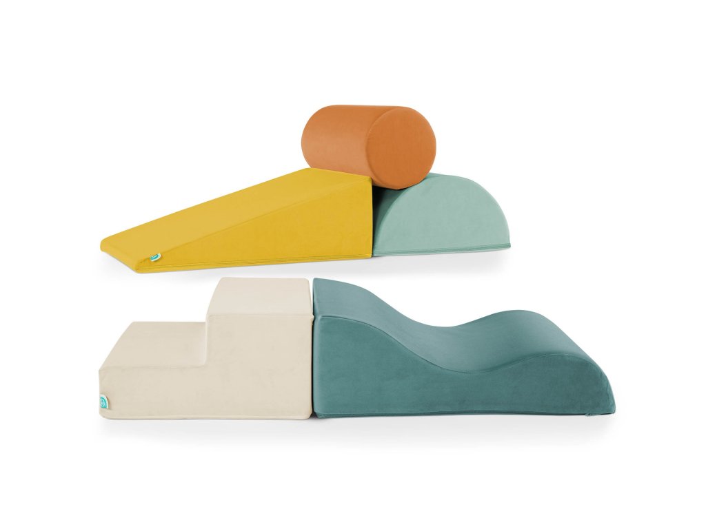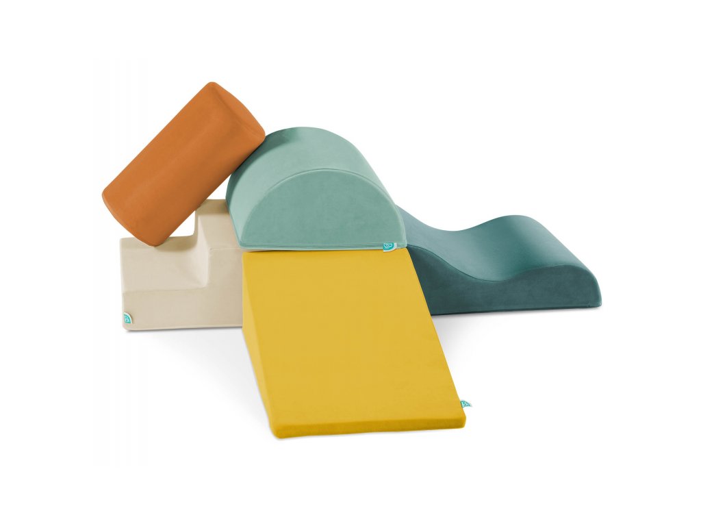 5-dílná sada pěnových tvarů WonderShapes promění každý dětský pokoj nebo hernu v zábavné hřiště plné fantazie. Obsahuje schod, rampu, válec, vlnitou rampu a půlválec – ideální pro tvorbu překážkových drah, prolézaček i kreativních staveb. Po rozbalení se jednotlivé díly samy roztáhnou do plné velikosti – jako kouzlem! Díky madlům si děti mohou své hřiště přestavovat dle chuti, zatímco měkké potahy zajistí pohodlí i bezpečnost.