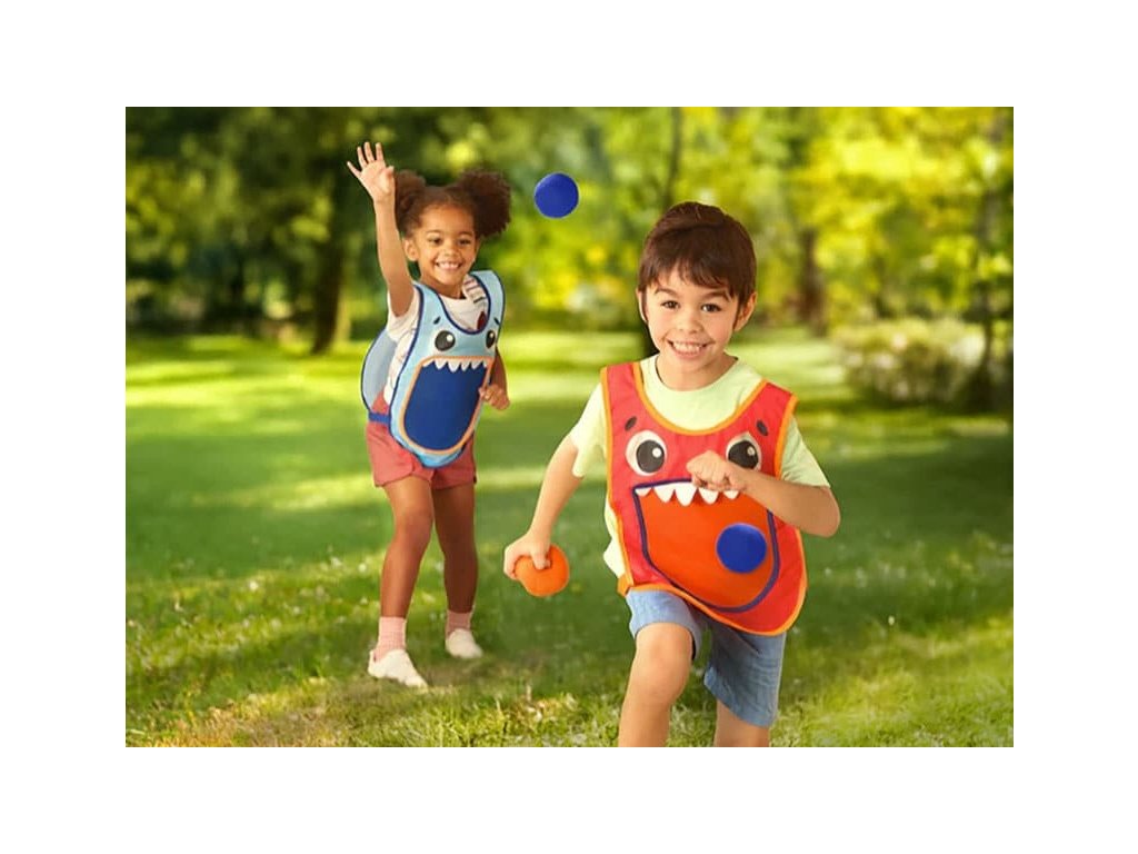 Je čas se rozhýbat a pořádně si užít zábavu! Tato všestranná herní sada je ideální pro aktivní hraní doma i venku. Děti se mohou honit, schovávat nebo uhýbat před „monstrem“ – nebo se samy proměnit v jedno! Dvě snadno navlékací monster vesty a měkké míčky se suchým zipem zaručují bezpečnou, veselou a neustále se měnící hru.