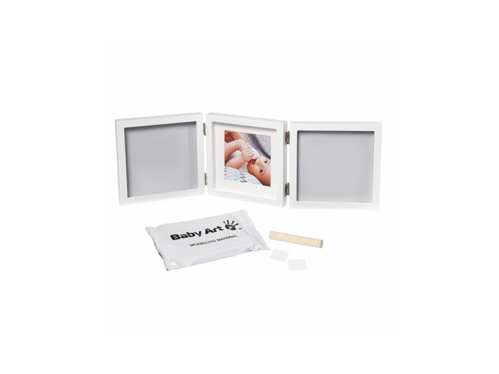 Rámeček Baby Art My Baby Style Double Grey nabízí tři oddělené prostory pro fotografii a otisk ručičky a nožičky Vašeho miminka. Vyrobte si krásnou dekoraci, která vám zároveň pomůže uchovat vzpomínky na krásné období po narození vašeho dítěte.
