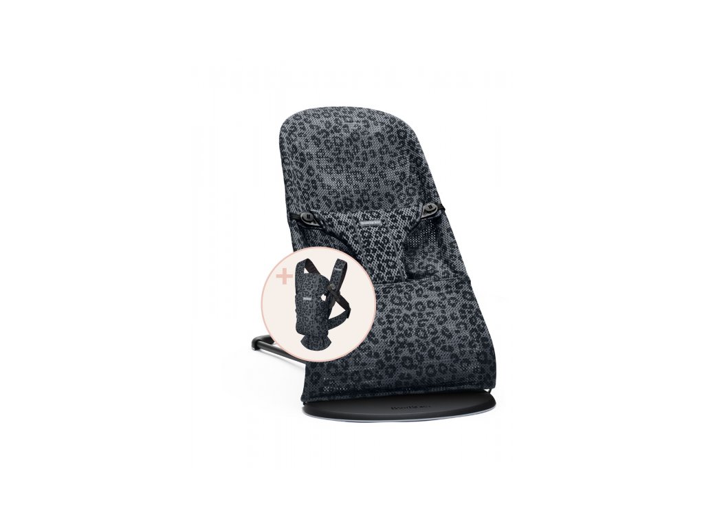 BabyBjörn lehátko Bliss Anthracite Leopard mesh s nosítkem MINI Anthracite Leopard 3D mesh