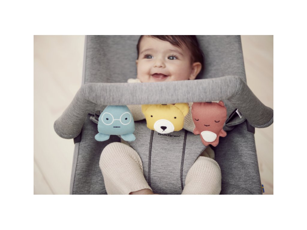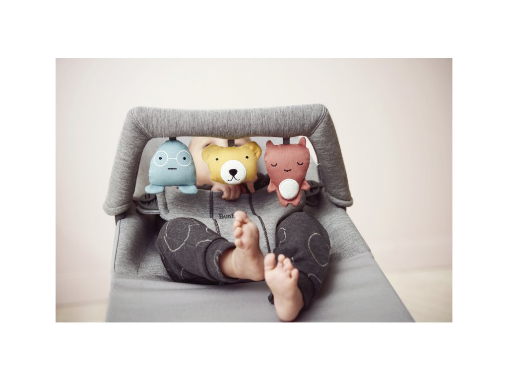 BabyBjörn Lehátko Bouncer Bliss Light Grey 3D Jersey s hračkou textilní Soft friends
