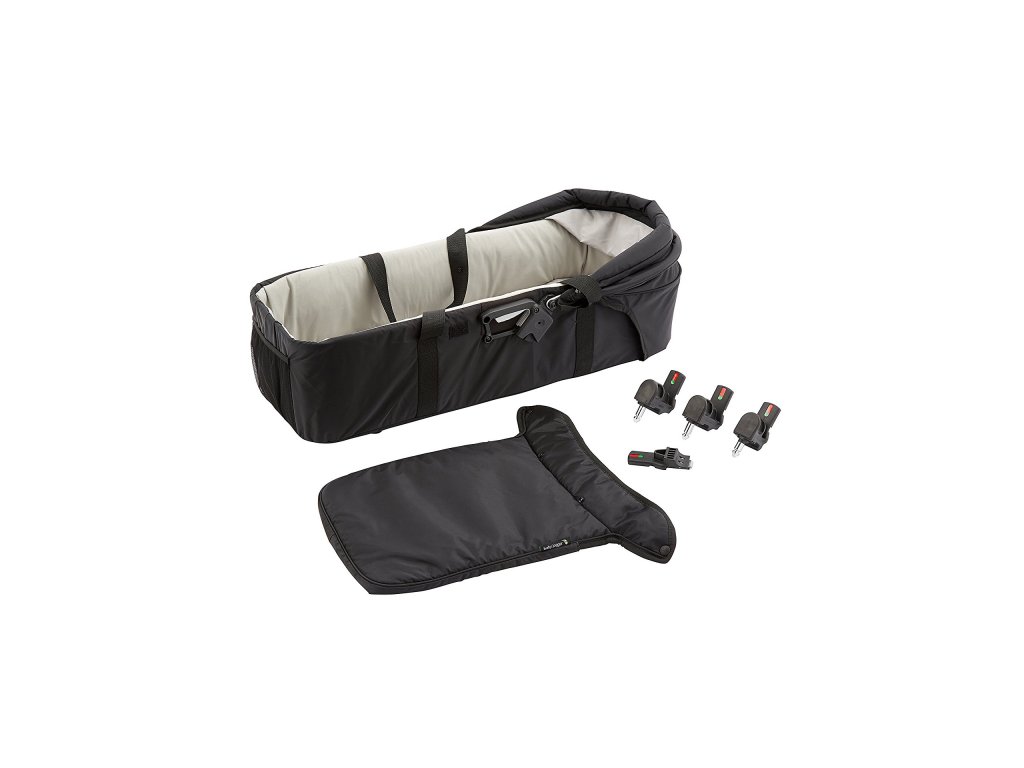 Korbička se připevní k rámu kočárku pomocí speciálních adaptérů, které jsou součástí dodávky.