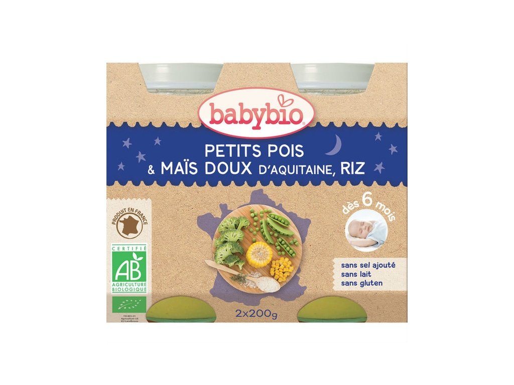 Složení:<brzelenina 58% (španělský hrášek 25%, francouzská sladká kukuřice 15%, španělská cibule, francouzská brokolice 8%), vařená voda, italská bílá rýže 7%, panenský rostlinný olej (italský řepkový a francouzský slunečnicový), francouzský tymián, esenciální mastné kyseliny, bez přidané soli, zahušťovadel, lepku, mléka a mléčných bílkovin