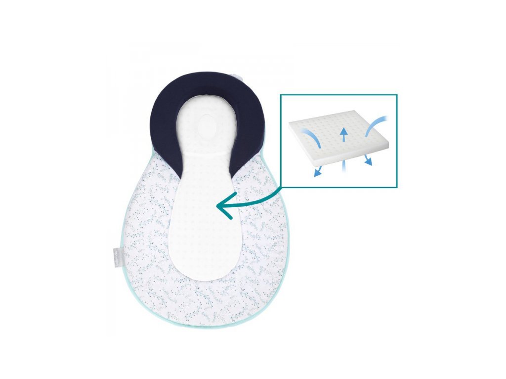 Ergonomický polštář zaručující perfektní polohu pro novorozence: ideální poloha zádíček, hlavičky a zvednutých nožiček.
