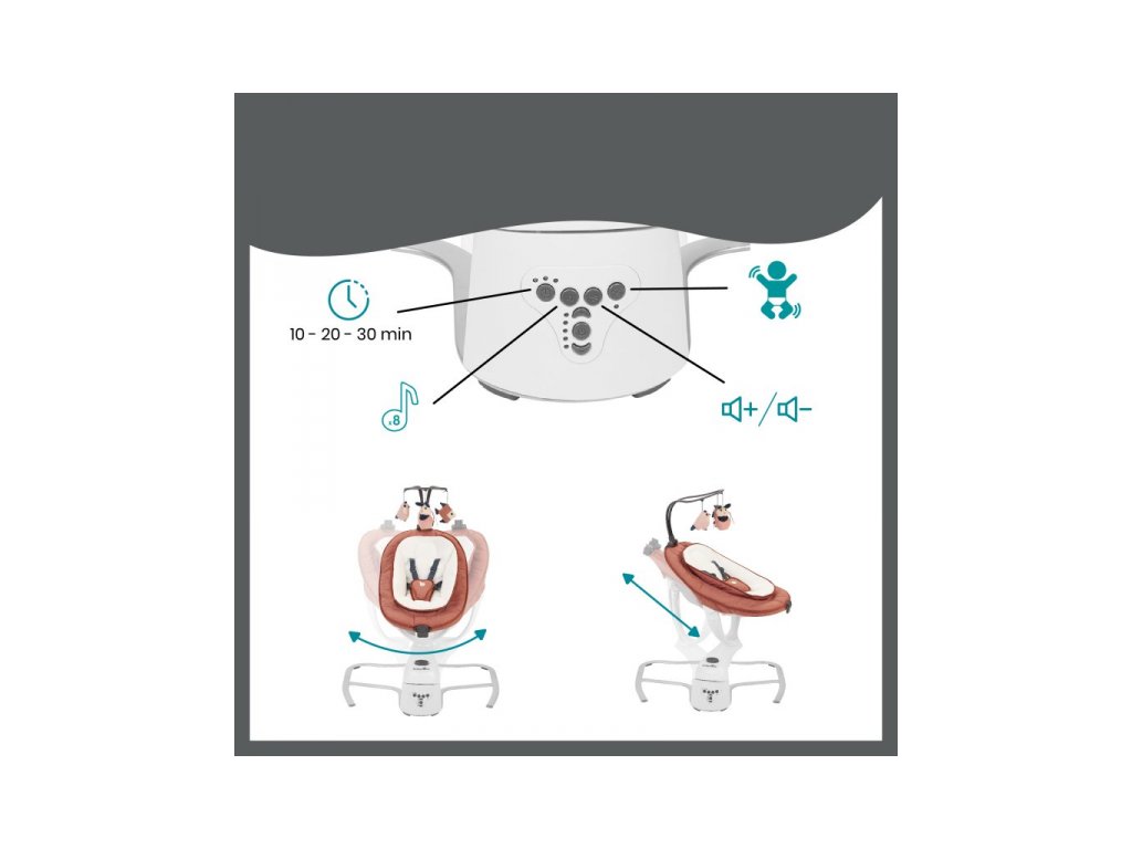 - nastavitelná doba houpání (10-20-30 minut) a nastavitelná hlasitost