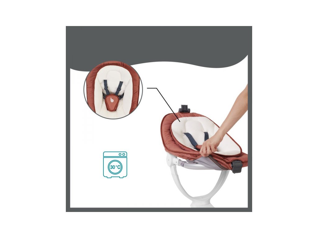 - materiál potahu houpačky: 100% polyester, možno prát na 30° C, doporučujeme gelové prací prostředky