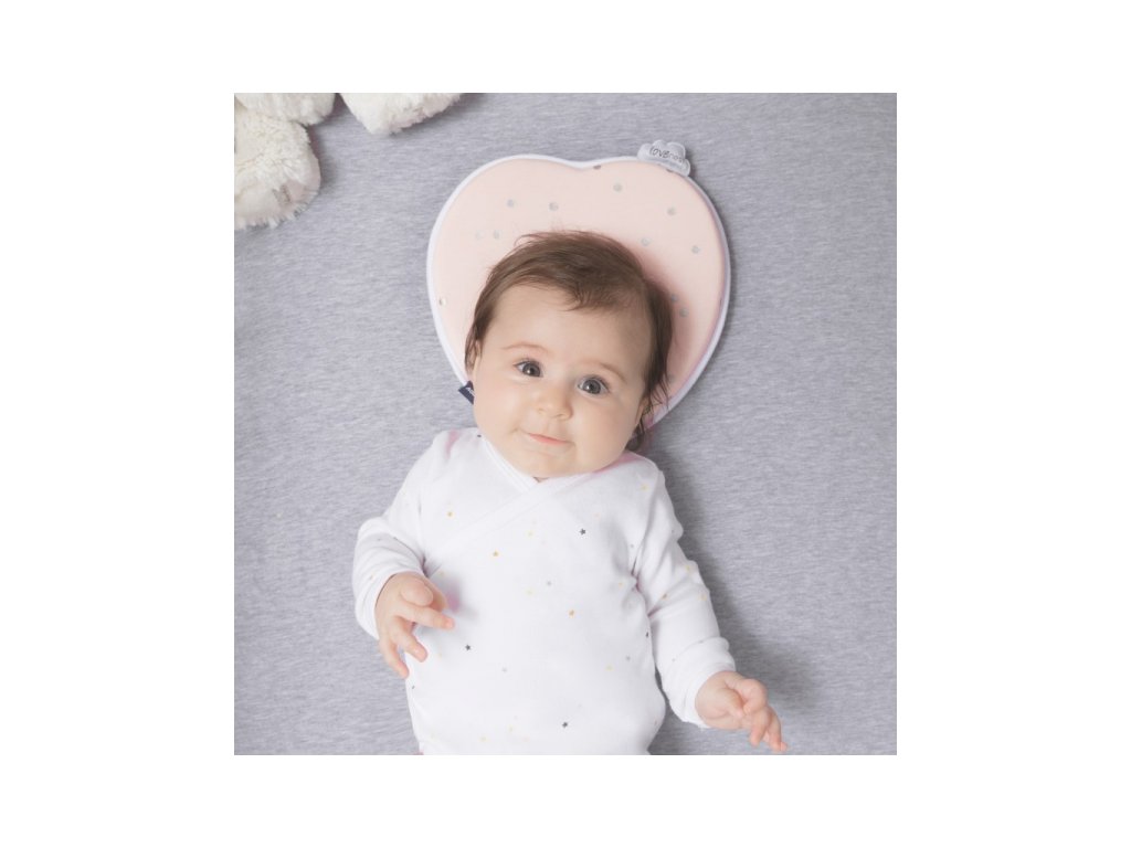 Měkký podhlavníček ve tvaru srdíčka pro komfortní spánek děťátka