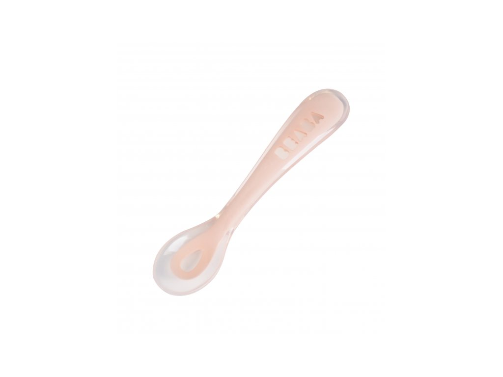 Silikonová lžička pro první samostatné krmení má ideální tvar pro dětská ústa. Tvar držadla usnadňuje dítěti držení lžičky. Lžička má na spodní straně rukojeti opěrku pro možnost hygienického odložení lžičky na stůl.