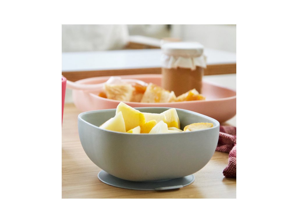 Miska s přísavkou z vysoce kvalitního silikonu umožňuje uchycení ke stolu nebo pultu jídelní židličky. Ergonomický tvar usnadňuje nabírání příkrmu.