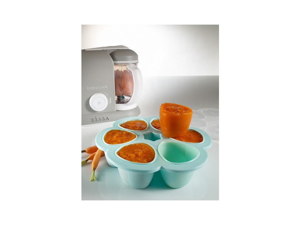 Zásobník na zeleninové i ovocné příkrmy do mrazáku. Jednotlivé porce nebo několik porcí najednou mohou být ohřívány ve vodní lázni nebo v mikrovlnné troubě. Kapacita 540 ml (6×90ml). Bezpečný silikonový materiál pro použití v mrazáku, mikrovlnné troubě i myčce na nádobí.