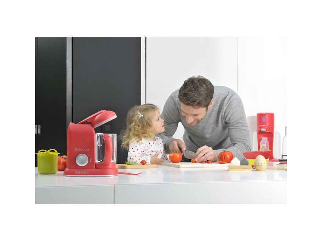 Skvělou pomoc při přípravě pokrmů pro děti představuje parní hrnec a mixér v jednom Babycook® Solo Beaba. Babycook® umožňuje zdravě uvařit pokrm v páře a následně ho ve stejné nádobě rozmixovat. Větší model Babycook® Solo s objemem 1100ml je ideální především pro maminky dvou a více dětí. Příprava jídla v Babycooku je velmi snadná – pouze do něj nalijete vodu, do vkládacího košíku vložíte na kousky nakrájené suroviny (zeleninu, maso atd.) a přístroj zapnete. Po skončení vaření (trvá nejdéle 15 min) se Babycook sám vypne. Chcete-li následně pokrm rozmixovat, pouze vysypete uvařené suroviny z vkládacího košíku do průhledné hlavní nádoby a rozmixujete (podle věku dítěte na jemnou hladkou kaši, nebo na hrubší strukturu s kousky). Když se dítě naučí dobře kousat, dá se Babycook® dále používat pro zdravé vaření v páře i bez mixování. Přístroj je možné použít i pro rozmrazování a ohřívání dětské stravy.
