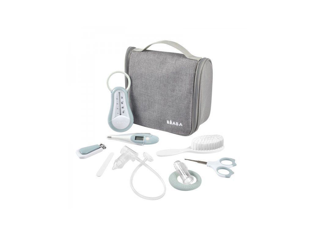 Závěsné toaletní pouzdro Beaba obsahuje devět základních doplňků pro hygienu a péči o dítě v kvalitním provedení: teploměr do vody, digitální teploměr, nůžky a kleštičky na nehty, kartáč na vlasy, kousátko, masážní kartáček na dásně, odsávačku hlenů a pilník na nehty.