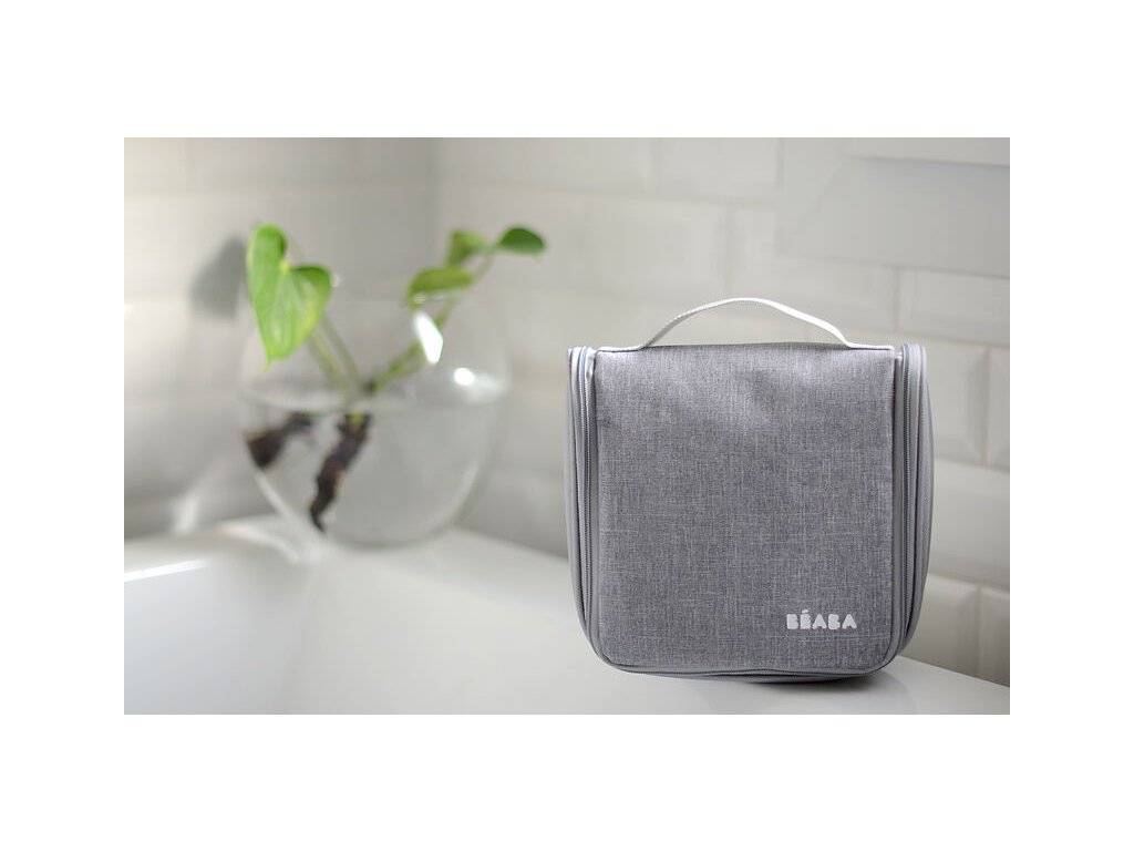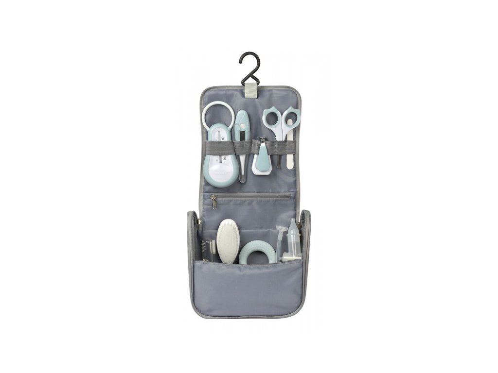 Závěsné toaletní pouzdro Beaba obsahuje devět základních doplňků pro hygienu a péči o dítě v kvalitním provedení: teploměr do vody, digitální teploměr, nůžky a kleštičky na nehty, kartáč na vlasy, kousátko, masážní kartáček na dásně, odsávačku hlenů a pilník na nehty.