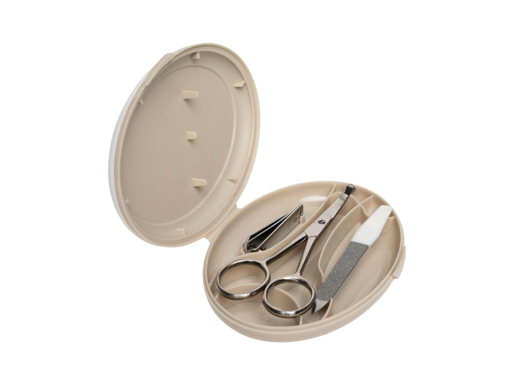 Obsahuje nůžky se zakulacenými konci, pilníček na nehty a také kleštičky na nehty. Vše je vyrobeno z nerezavějící ušlechtilé oceli. Krabička s výrazným motivem na víčku chrání před prachem a pomáhá udržovat manikúru v čistotě. Ale i přesto před každým použitím jednotlivé nástroje pečlivě očistěte a u novorozenců i desinfikujte roztokem lihu.