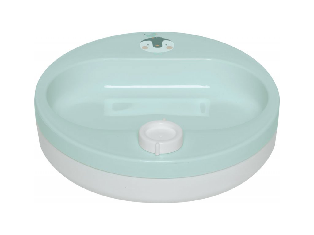 Některé děti si chtějí své jídlo důkladně užít. Aby jim přitom jídlo nevychladlo, můžete použít ohřívací talíř, který slouží k udržení teploty jídla po delší dobu. Ale nejenom to. Vodní obsah zvyšuje hmotnost a tím i stabilitu talíře na stole. Navíc je talíř vybaven protiskluzovým pryžovým kroužkem na jeho spodní straně, který snižuje nebezpečí shození ze stolu. Můžete jej ohřívat v mikrovlnné troubě a mýt v myčce na nádobí, ale vždy s otevřeným šroubovým uzávěrem. Teplota vodní náplně může být maximálně 50°C. Při jídle nepoužívejte kovové příbory. Vhodný pro děti od chvíle, kdy samy sedí až do 36 měsíců.