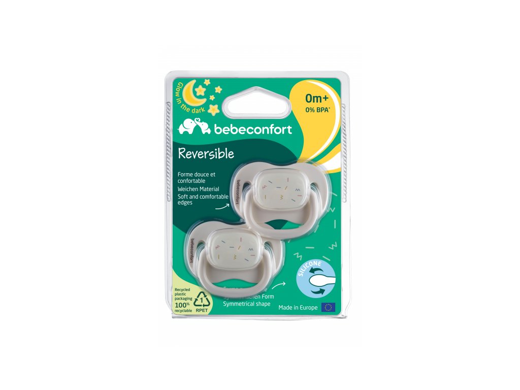 Bebeconfort Šidítko silikonové symetrické svíticí 2ks 0m+ Sand