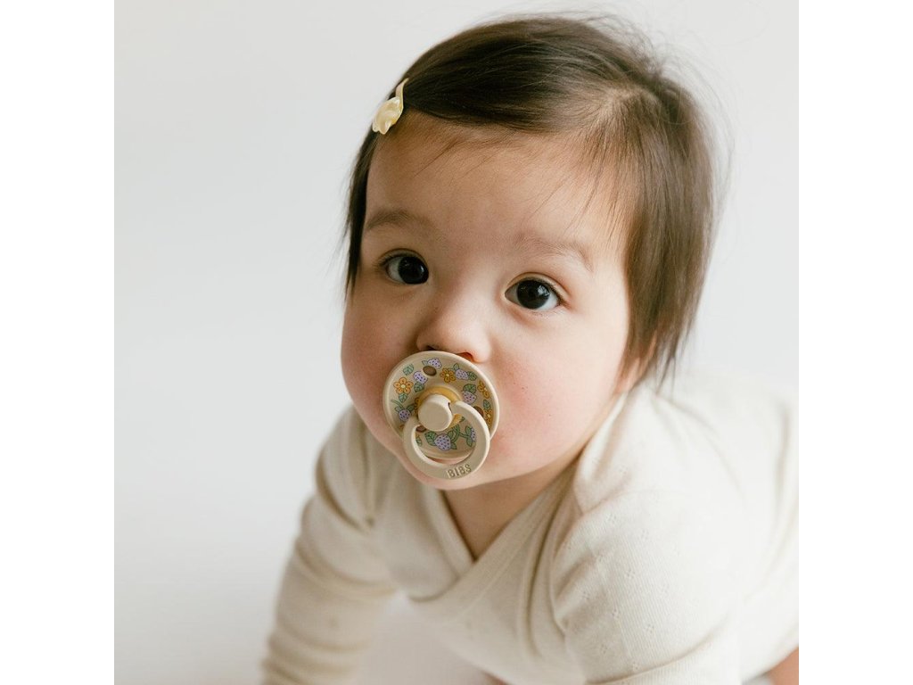 BIBS dobývá celý svět. Jednoduché a stylové. Sací část je vyrobena ze 100% přírodního kaučuku, který je mimořádně pružný a měkký zároveň, odolný vůči vzniku trhlin a odštěpení malých kousků. Dudlík je navržen tak, aby nedráždil citlivou pokožku miminka. Kulatý kroužek s ventilačními otvory má klenutý tvar, téměř se nedotýká pokožky kolem úst, která tak zůstává klidná, bez otlaků a podráždění. Díky měkoučkému kaučuku a zabudovanému vzduchovému ventilu dítě dudlík snadno stlačuje a formuje v ústech, čímž je zachován přirozený vývoj patra, dásní a zoubků.