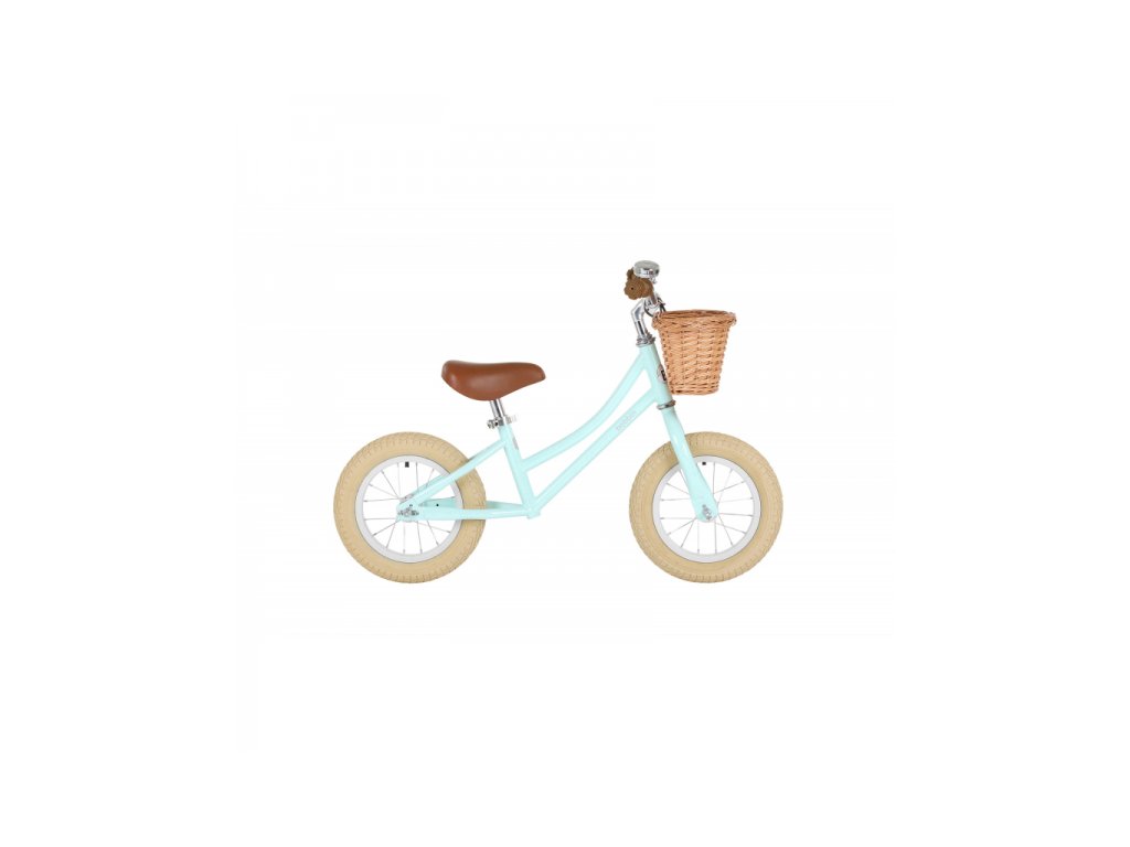 Odrážedla se vyznačují lesklým lakem na povrchu, béžovo-krémovými plášti kol a opravdu roztomilým proutěným košíkem.