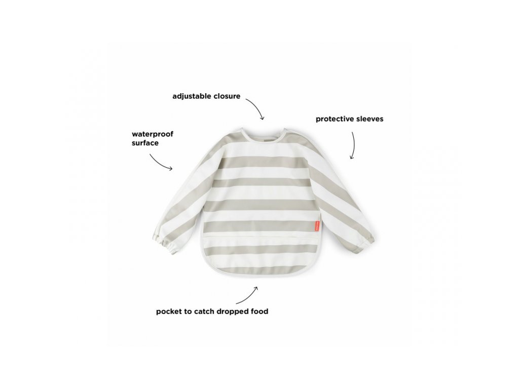 Měkký bryndáček je voděodolný a má praktické elastické rukávy, které udrží Vaše děťátko v suchu. Snadno se čistí a ušetří vám spoustu času při úklidu.