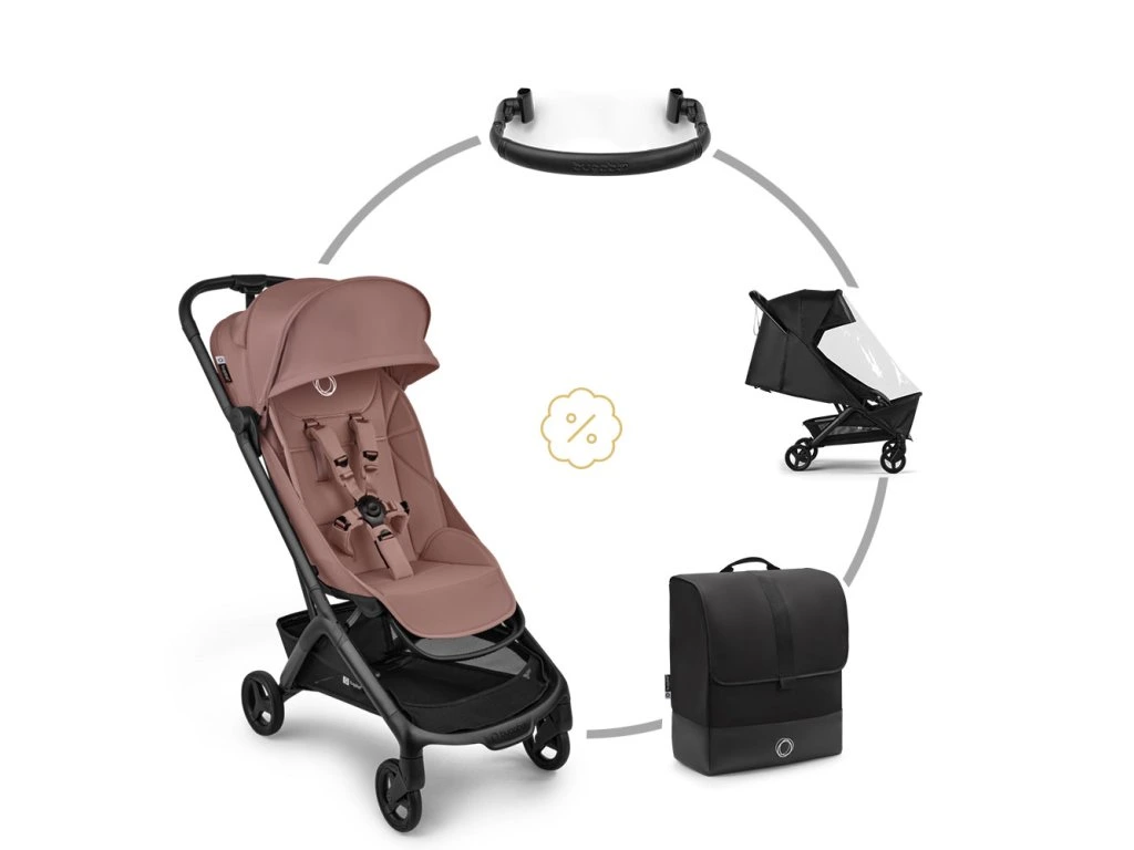 Bugaboo Butterfly 2 set + madlo + pláštěnka + taška BLACK/DUSTY PINK