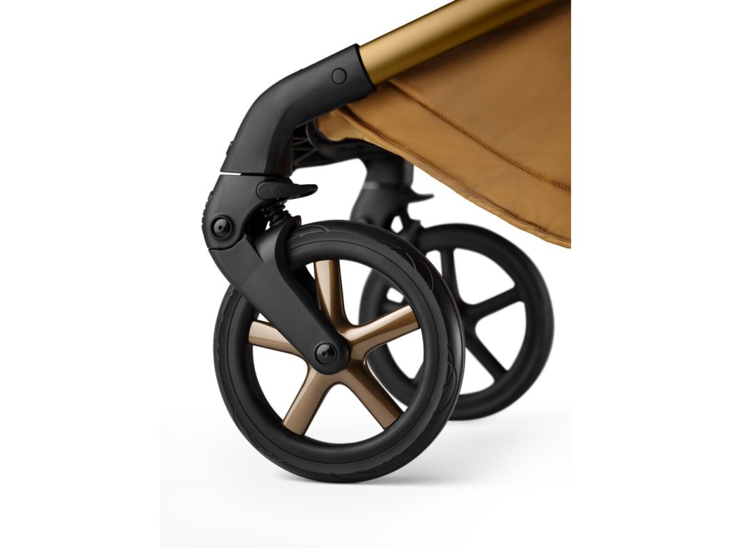 Když se rozhodnete vyjet si s Bugaboo Fox⁵ na pláž či do sněhu zajisté oceníte funkci 2 kol. V této pozici složíte podvozek s koly k sobě a kočárek pak vezete jen na dvou kolech. Díky této funkci je projíždění pískem či sněhem snadnější.
