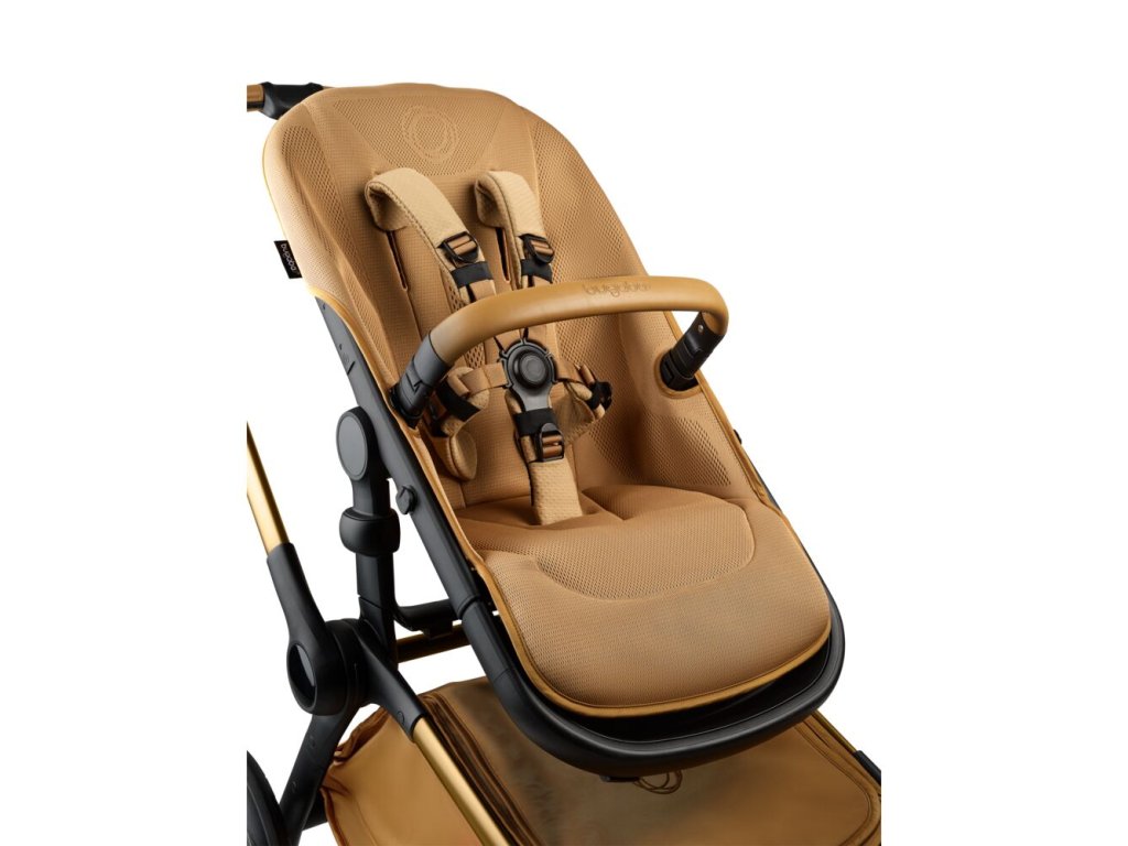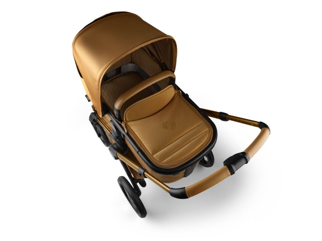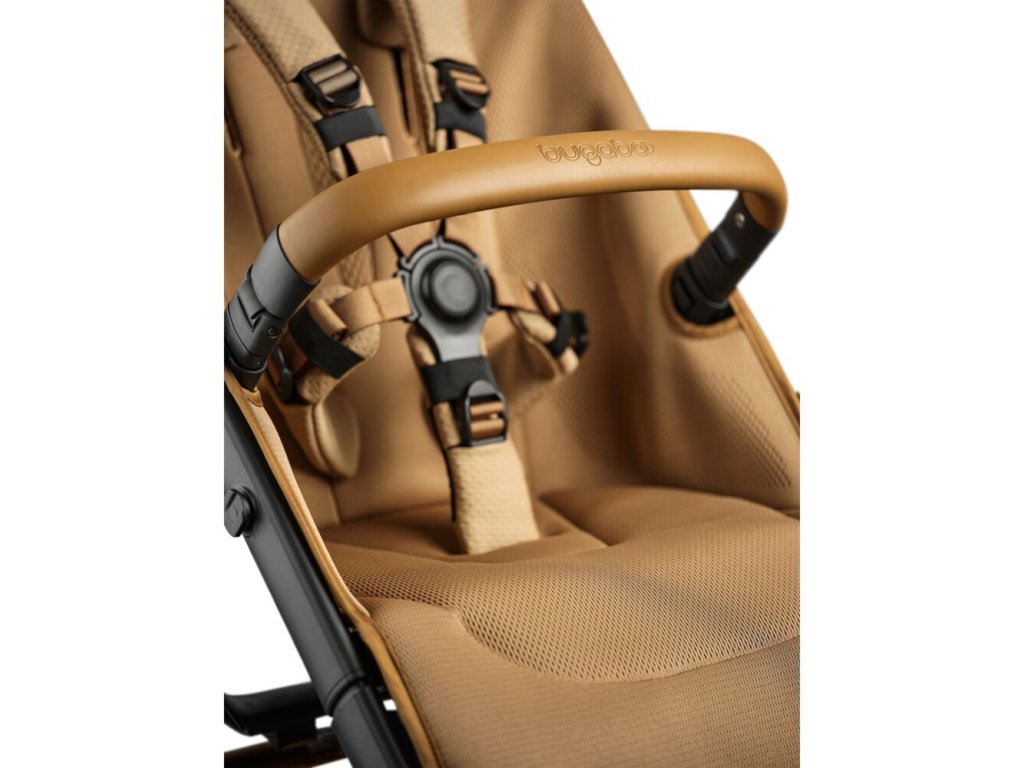 Prošívání na rukojeti a sportovní sedačce, stejně jako vyražené logo Bugaboo na předním madle podtrhuje luxusní vzhled kočárku.
