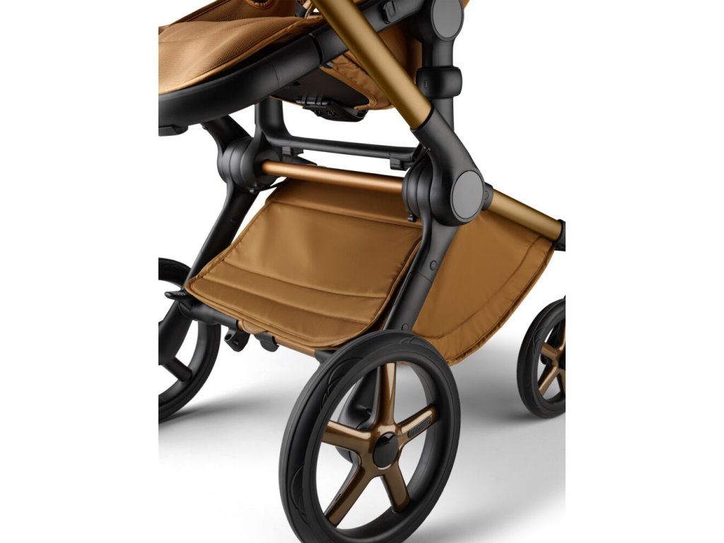 Stačí zatlačit a jet, jen tak, bez námahy, prostě jet. Vezměte tento kočárek na všechna vaše oblíbená místa a nebudete se stačit divit. Odpružení všech kol a velká kola zajistí pohodlnou a stabilní jízdu v jakémkoliv terénu. Přepracovaný podvozek kočárku Bugaboo Fox⁵ se díky posunutému těžišti lépe ovladá. Snadno přístupný velký nákupní koš pojme i ty největší nákupy. A to nejlepší nakonec: super lehký podvozek a lehký způsob skládání jednou rukou přímo na rukojeti z něj dělají ideálního společníka do velkého domu, stejně jako malého bytu.