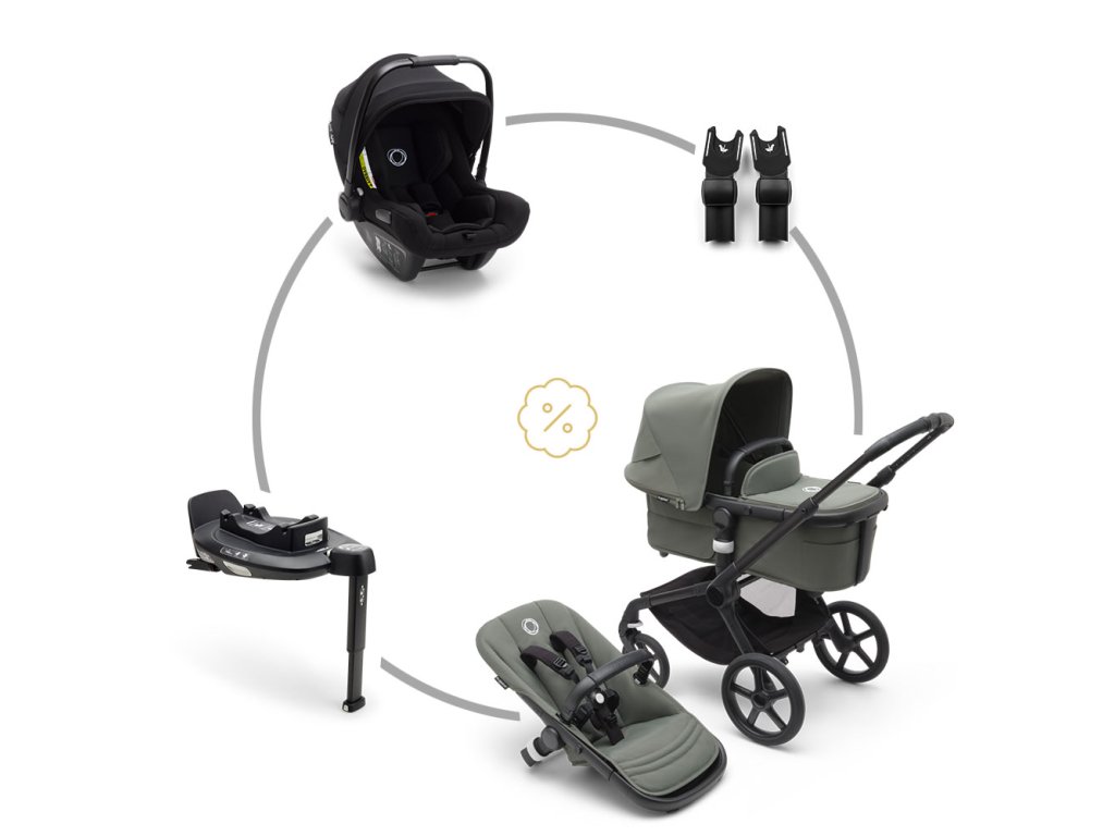Zvýhodněný set kočárku Bugaboo Fox5 se sportovní a hlubokou korbou, základnou ISOFIX a autosedačkou + adaptéry na autosedačku