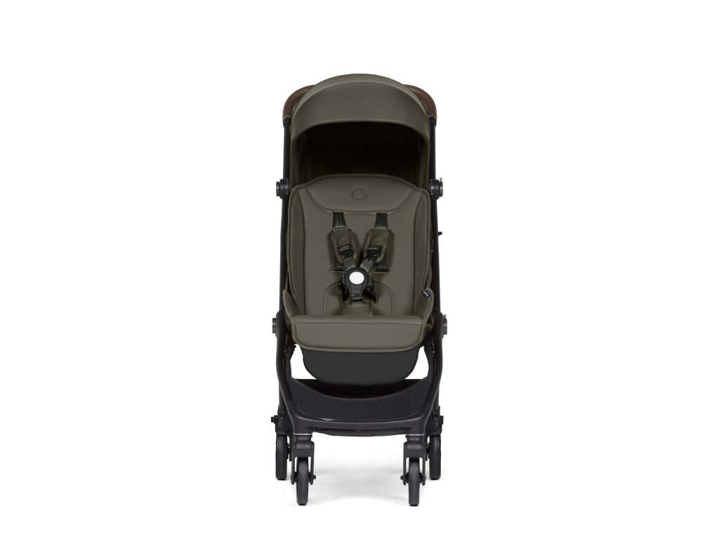 Kočárek snadno složíte jednou rukou, po složení sám stojí, takže se s ním lépe manipuluje na letišti, ve vlaku i v restauraci. Pro snadné přenášení je součástí kočárku ramenní popruh a cestovní taška.