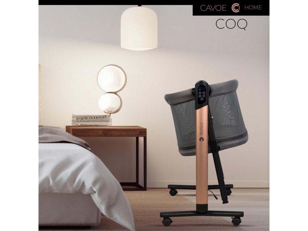 Cavoe COQ v sobě kombinuje několik funkcí v jednom produktu – je to elektrická kolébka, dětská postýlka a ohrádka. Je určena pro děti do 9 kg (funkce kolébky) a jako ohrádka ji lze využít až do 24 měsíců. Nabízí pět rychlostí houpání, tři délky cyklu, sedm poloh výšky, Bluetooth připojení, dálkové i dotykové ovládání, a stabilní konstrukci s bezpečnostními pásy pro spojení s postelí rodičů.