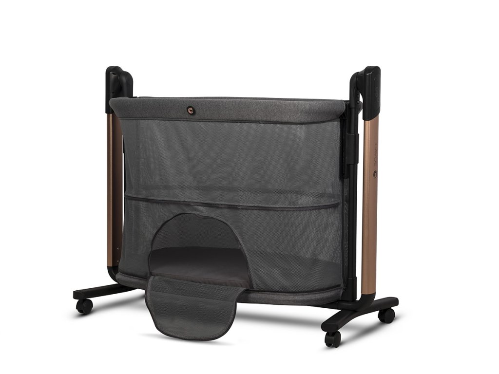 Kromě elektrické kolébky nabízí Cavoe COQ i plnohodnotnou funkci dětské postýlky. Díky sklopné bočnici, systému bezpečnostních popruhů a až sedmi možnostem nastavení výšky se snadno přizpůsobí každé rodičovské posteli a poslouží jako praktická dětská přistýlka.