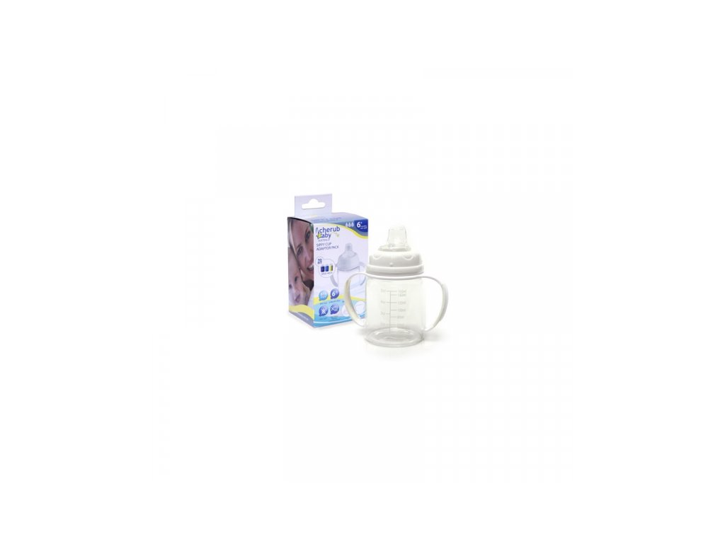 Savička s ručkami k lahvím Cherub Baby ideální doplněk skleněné lahve, vhodný pro děti od 9 ti měsíců, z lahvičky jednoduše odstraňte dudlík a nahraďte savičkou 9m+, po nasazení ergonomické odnímatelné rukojeti se lahvička snadno děťátku drží