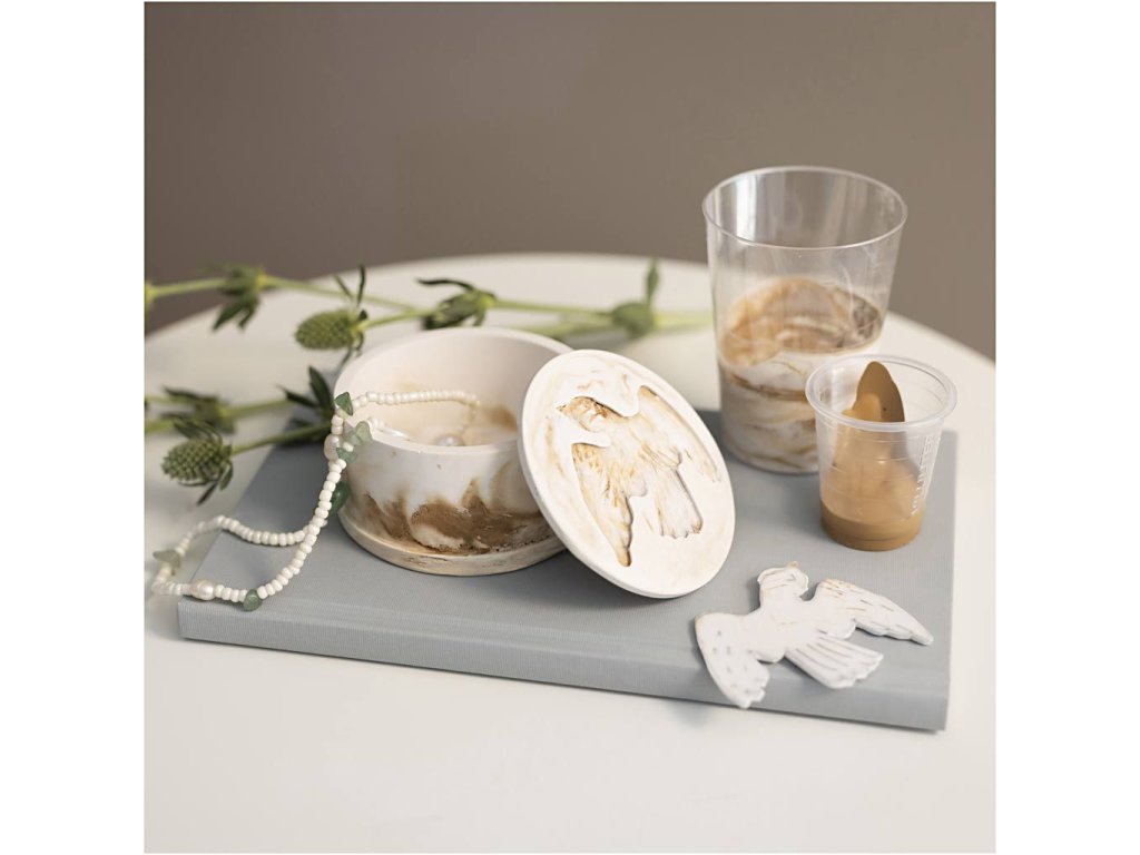 Vyrobte si stylovou designovou dózu s víčkem, která ozdobí každý interiér a nabídne elegantní úložný prostor na drobnosti. Tato sada vám umožní snadno a kreativně pracovat s pryskyřičnou odlévací směsí a vytvořit originální kousek s jemným mramorovým efektem.