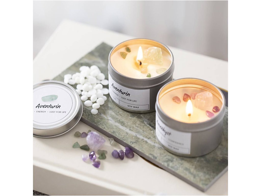 Vneste do svého domova klid, energii a styl s ručně odlévanými svíčkami s přírodními krystaly. Tato kreativní sada vám umožní vytvořit dvě luxusní svíčky ze 100% sójového vosku, které kombinují krásu, symboliku a wellness
