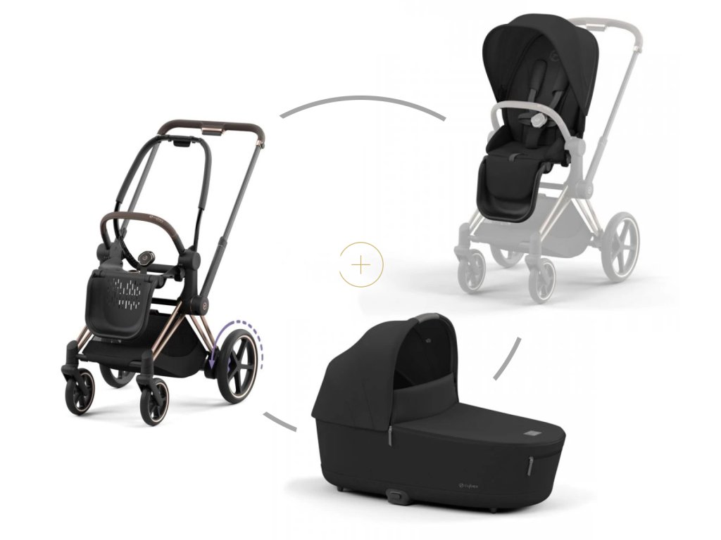 Cybex ePRIAM set podvozek Rosegold + korba + potah sezení + Sepia Black