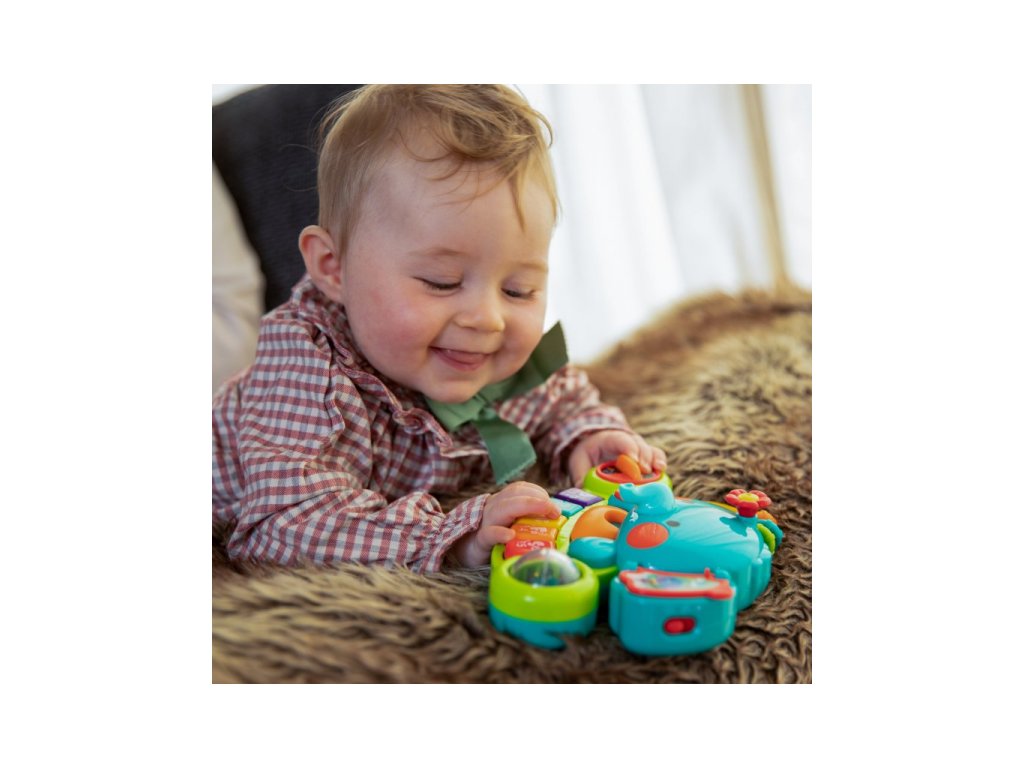 Plastové piánko obsahující několik interaktivních a pohyblivých částí, které rozvíjejí zručnost a jemnou dětskou motoriku.