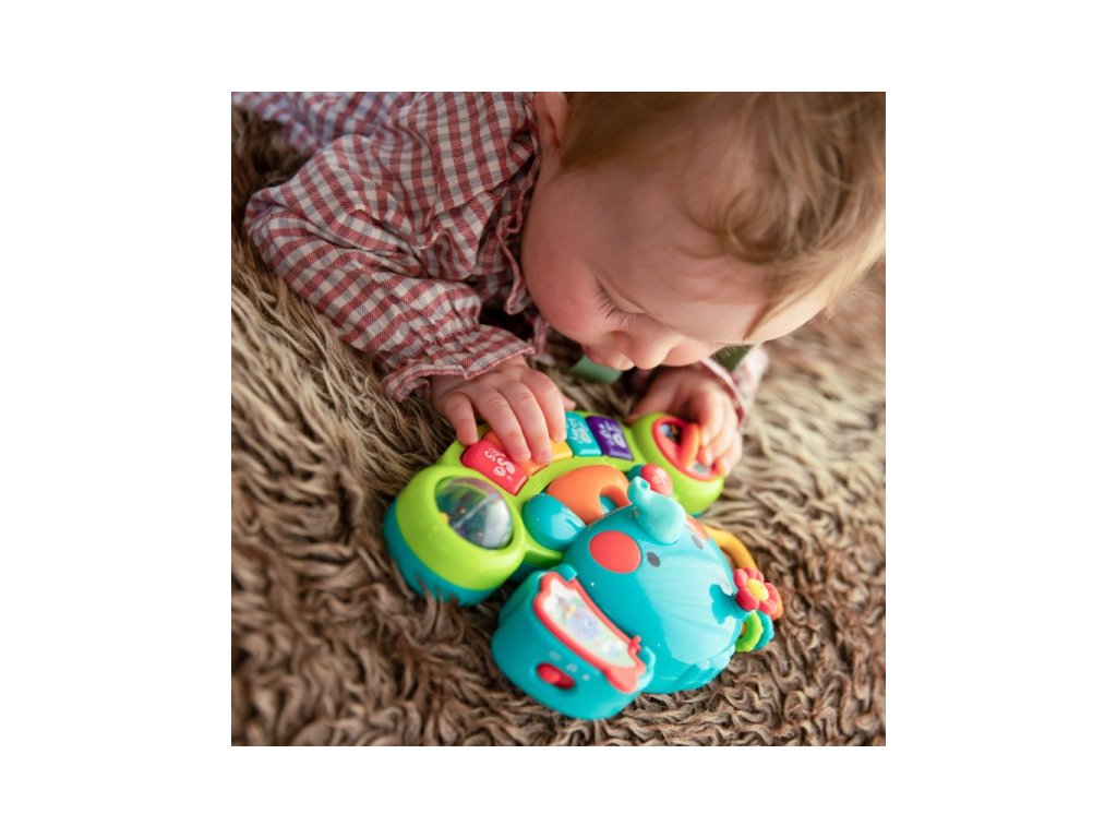 - mnoho interaktivních a pohyblivých částí napomáhající k rozvoji vizuálních, sluchových a hmatových smyslů