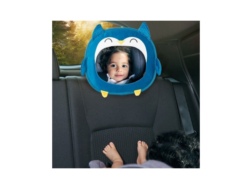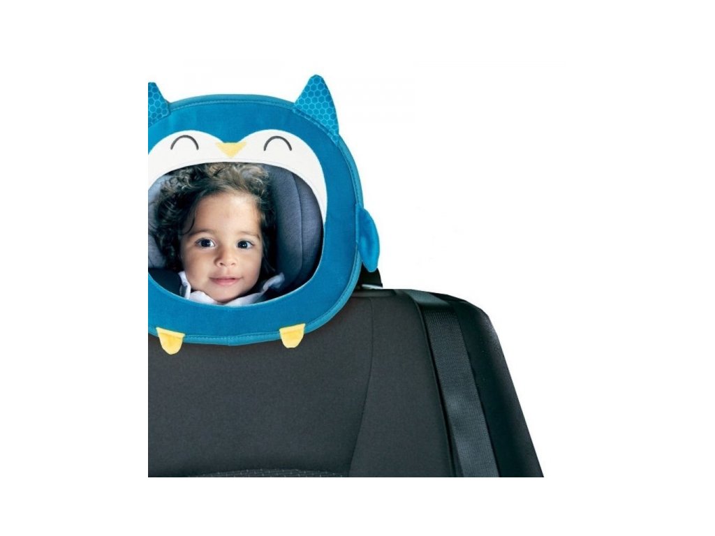 Zrcátko s veselým motivem pro kontrolu dítěte v autosedačce sedící v protisměru jízdy.