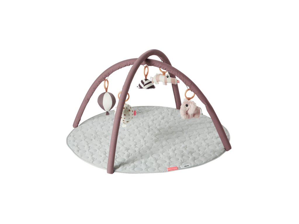 Aktivní hrací podložka s útulným prošíváním ve tvaru puntíků včetně pěti závěsných hraček, určená pro pohybovou aktivitu Vašich nejmenších. Hračky můžete zavěsit do 13 různých pozic na hrací oblouky. Krokodýl Croco bude praskat při dotyku, sloník Elphee chrastit, do maléh, balonky v sobě mají zvoneček a v zrcátku může Vaše miminko pozorovat svou tvářičku. Vše pro stimulaci Vašeho dítěte.