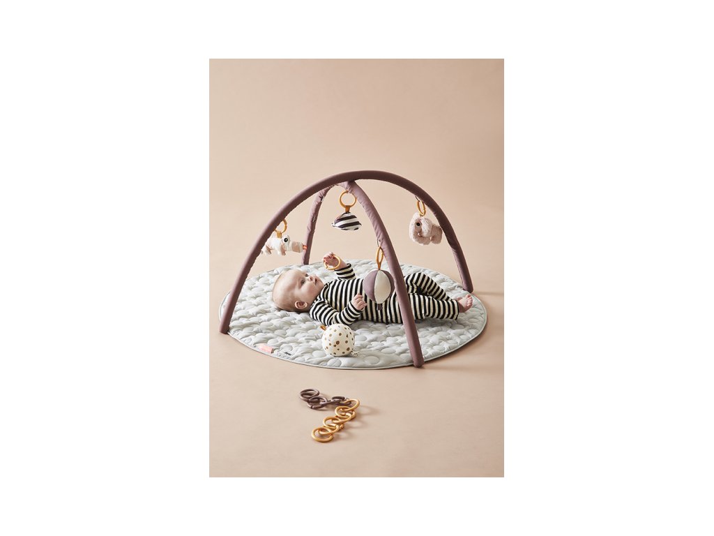 Závěsné oblouky jsou připojeny pomocí suchého zipu k dece a mohou být snadno odstraněny, takže deka může být použita samostatně jako podložka. Hračky můžete díky praktickému úchycení pro změnu samostatně zavěsit například na dětský kočárek.