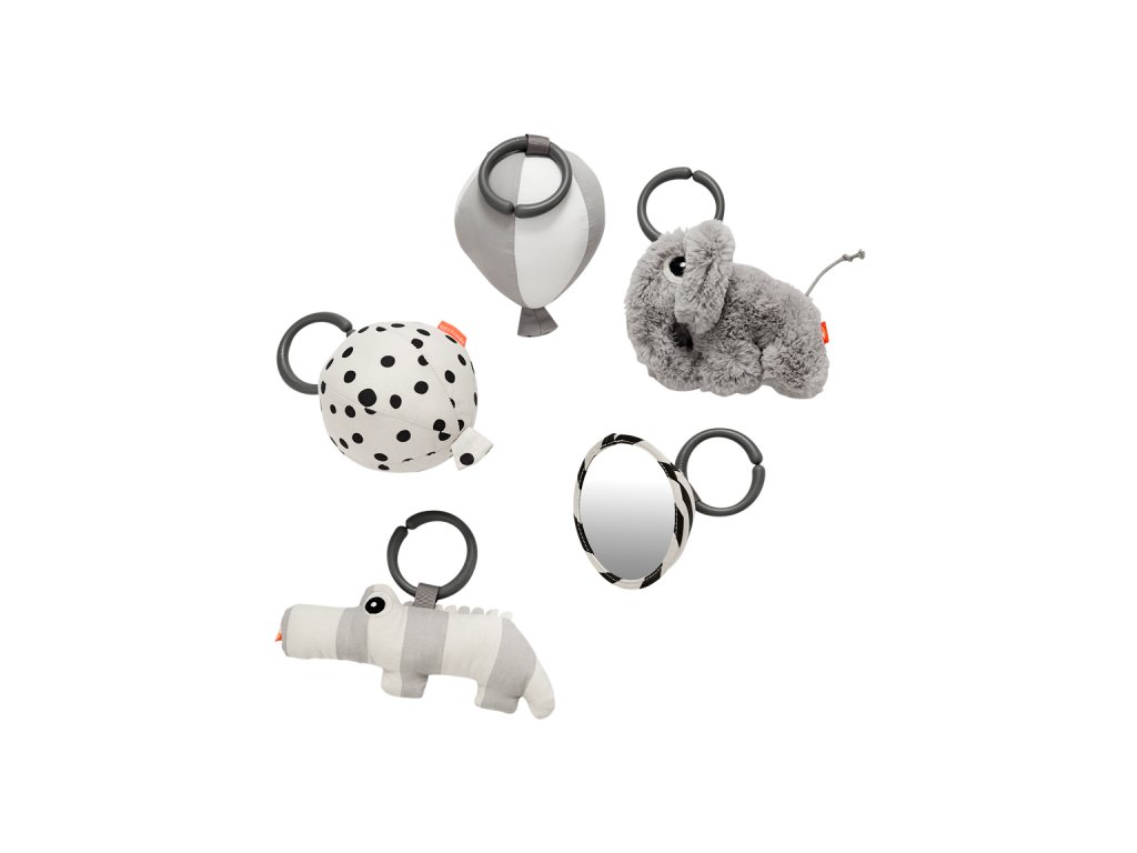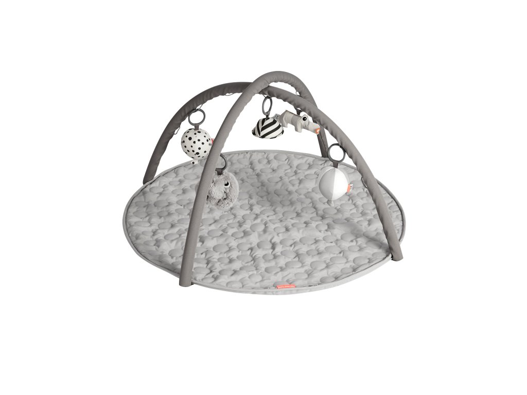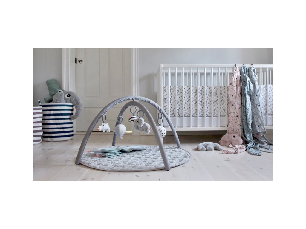 Aktivní hrací podložka s útulným prošíváním ve tvaru puntíků včetně pěti závěsných hraček, určená pro pohybovou aktivitu Vašich nejmenších. Hračky můžete zavěsit do 13 různých pozic na hrací oblouky. Krokodýl Croco bude praskat při dotyku, sloník Elphee chrastit, do maléh, balonky v sobě mají zvoneček a v zrcátku může Vaše miminko pozorovat svou tvářičku. Vše pro stimulaci Vašeho dítěte.