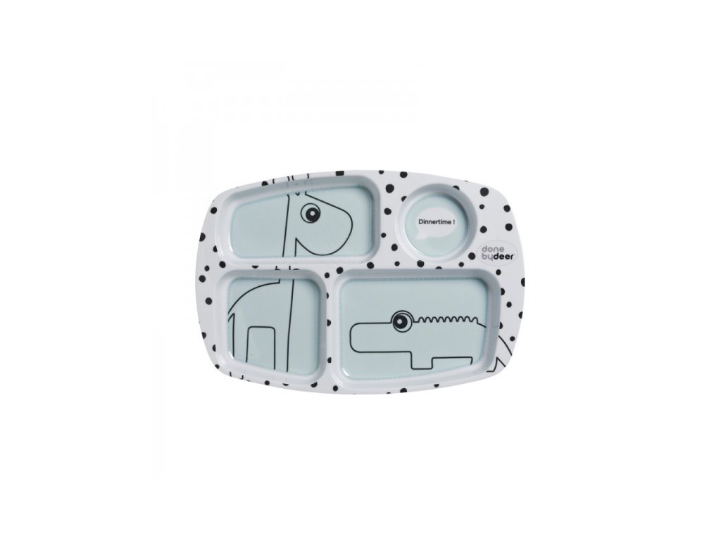 DONE BY DEER Dělený talíř Happy Dots - modrý